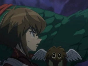 Jaden and Bastion are still Duel Academy students, so they have to practice a lot. Bastion uses his WaterDragon again, but Water Dragon can not defeat Jaden's ShiningFlareWingman. Before dueling against Zane, Aster talks to his manager about the future and his victory. Jaden is extremely surprised, when he sees Avian's appearance on Aster's field. During next turn, Aster fuses Avian with Burstnatrix, but instead of FlameWingman, Aster creates PhoenixEnforcer which impresses Jaden and Syrus. But the best thing in PhoenixGuy is that he can not be destroyed in battle. And thanks to that special ability, Aster defeats Zane, by fusing PhoenixEnforcer with Sparkman to summon ShiningPhoenixEnforcer and using DestructionOfDestiny to send 4 more ElementalHeroes to the graveyard and raise ShiningPhoenixGuy's attack to 4900.