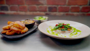Forty amateur cooks have been whittled down to the most promising eight. It's the first of the semi-finals, and the eight best cooks come together to battle in a team challenge, the Relay Invention Test. Split into two teams of four, both groups must create two dishes between them; a main course based on lamb, and a dessert using pear as the main ingredient. Each team member has just 20 minutes to make their contribution to the dish, and they must do so without communicating with one another.